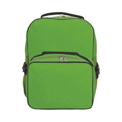 Mochila escolar con compartimento principal y asa. Incluye lonchera con broches de seguridad. Medidas: 29.5 alto x 36 ancho
