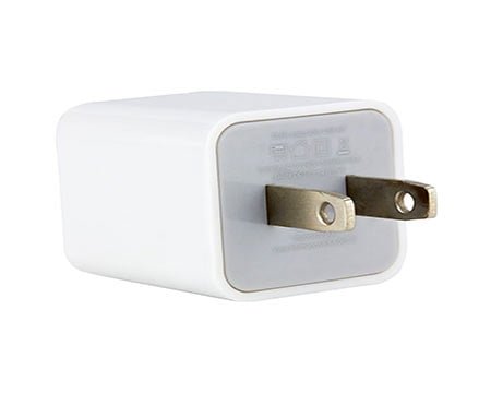 Adaptador de corriente con doble entrada USB para smartphone y tablet. Medidas: 3 x 2.7 cm