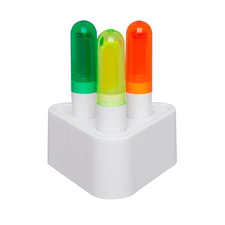 Plástico. Set de tres resaltadores de cera con base triangular de plástico. Sistema anti dry. 7,4 x 3,3 cm.