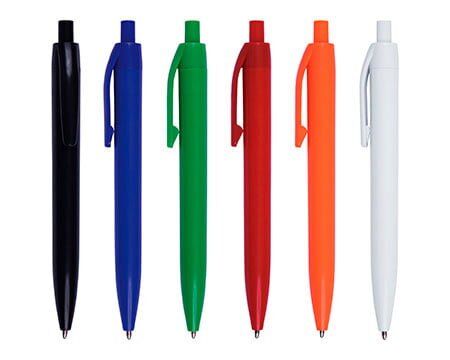 Bolígrafo de plástico con cuerpo y clip de color. Mecanismo de click. Medidas: 14 x 1 cm