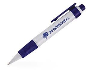 Bolígrafo plástico con cuerpo en color blanco, grip antideslizante y clip de color. Mecanismo de click. Medidas: 13.2 x 1.3 cm