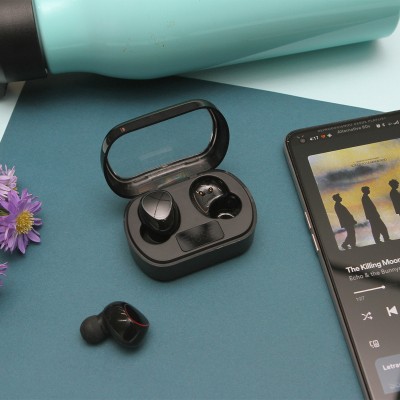 Audífonos estéreo inalámbricos, fabricados en plástico, con estuche de carga. Versión Bluetooth V5.3, distancia de transmisión óptima de hasta 10 m. Duración de 4 horas de reproducción. Interfaz de carga tipo USB-C. . Medidas: 2.9x6x4 cm.