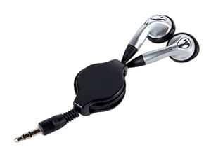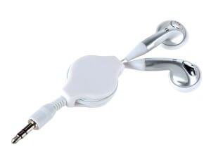 Audifonos personales, para guardarse, se enrollan alrededor de la polea de plástico gracias a su mecanismo retráctil, el seguro se activa estirando el cable al tope. Extensión total 80 cm.