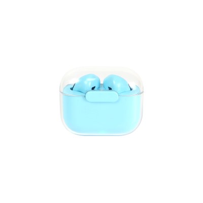 Set de audífonos inalámbricos, con estuche de carga. Distancia de transmisión de 10 m. Tiempo de reproducción de 4 a 5 horas. Puerto de carga tipo-C. Capacidad de batería de estuche de 250 mAh y de los audífonos de 30 mAh. Medidas: 5.5x2.6x4.7 cm.