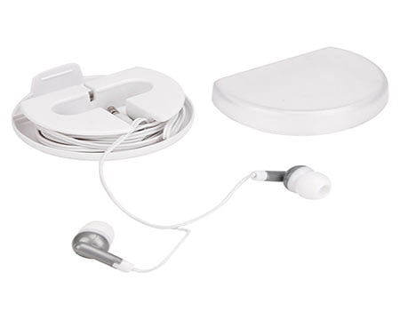 Audífonos enrollables con estuche con función de soporte para smartphone. Medidas: 6.5 cm Diámetro