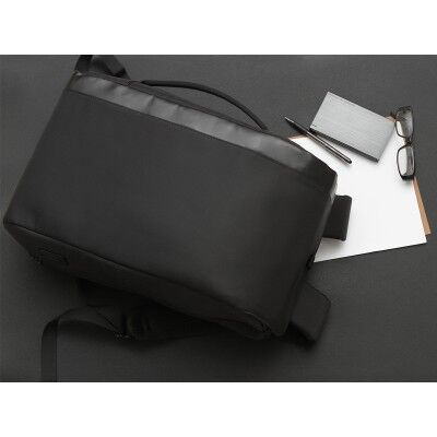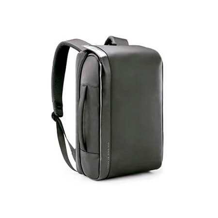 Backpack fabricada en material repelente al agua, con salida para carga USB, compartimento para laptop o tableta inteligente, tirantes acolchonados ajustables, asa lateral y cinta trasera para fácil transportación. Medidas: 45.5x29 cm.
