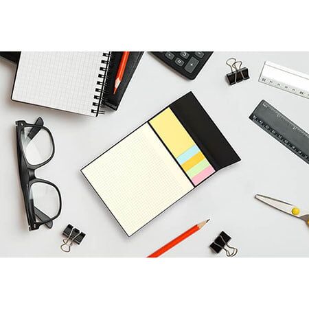 Block de notas con 70 hojas de cuadricula detalle en PU y banderines adheribles. Medidas: 20x14.8 cm.