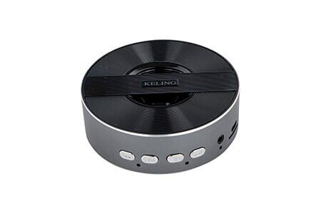 Bocina portátil con Bluetooth, Micro USB, auxiliar, Micro SD y batería recargable. Incluye cable de carga y auxiliar. Batería recargable con duración de 4 hrs. Medidas: 2.5 alto x 8.5 ancho