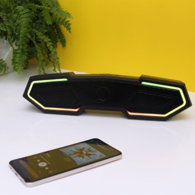 Bocina Bluetooth con 4 botónes en la parte superior para controlar el volumen de la música o pasar a otra canción, con radio y luz LED ( la cual puede cambiar de color), con ranura para tarjeta TF y entrada para memoria USB ( el cual ya viene incluido). Con caja de cartón individual. Medidas: 35.2x8.9 cm.