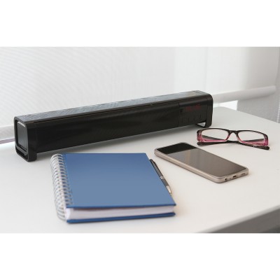 Bocina bluetooth con radio y reloj despertador, con pantalla en una esquina de la bocina, cuenta con ranura para tarjeta TF y entrada para memoria USB. Carga a través de cable USB que va incluido. Su diseño moderno y funcional lo convierte en un regalo ideal para ti mismo o para alguien especial que aprecie la comodidad y la innovación en la vida diaria. Incluye caja de cartón individual. Medidas: 40x6.9 cm.