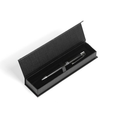 Bolígrafo fabricado en metal, lo que le confiere durabilidad y una apariencia distinguida, cuenta con detalles cromados en la punta y el clip, lo que agrega un toque de brillo y refinamiento al diseño, tinta de escritura negra, incluye un estuche individual diseñado especialmente para proteger y resaltar la belleza del bolígrafo, es una elección excepcional. . Medidas: 13.8x1.3 cm.