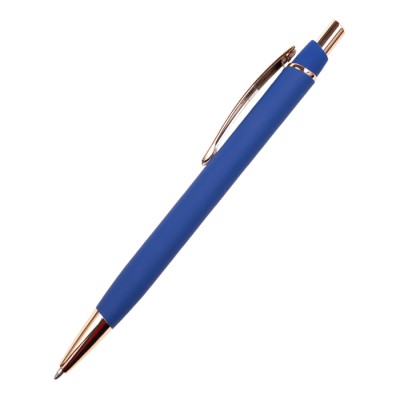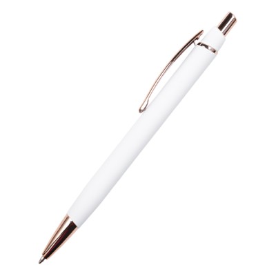 Bolígrafo de aluminio con mecanismo de click, terminado mate, suave al tacto, con detalles en oro rosa (punta, clip y botón). Al grabar destapa en color oro rosa. Medidas: 13.8 x 1 cm