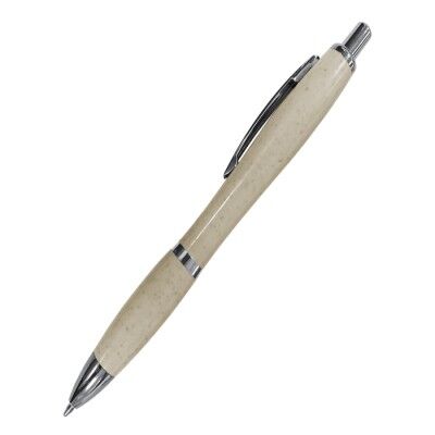 Bolígrafo ecológico y reciclable, con cuerpo de plástico ABS y "fibra de Trigo", tiene clip metálico, cuenta con punta, clip y detalle al centro en color cromo. Mecanismo de click. Medidas: 14 x 1.2 cm