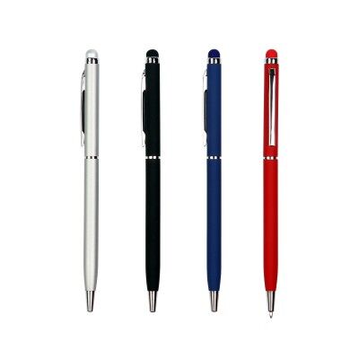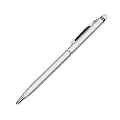 Bolígrafo con barril de aluminio, clip metálico, punta plástica, con touch en la parte superior. Tinta de escritura azul. Medidas: 13.6x.8 cm.