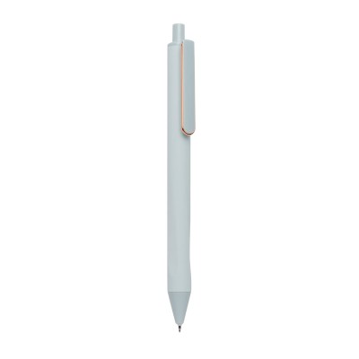 Bolígrafo con terminado tipo rubber. Mecanismo pulsador. Su diseño inferior permite un mejor agarre. Medidas: 1.2 x 14.3 cm