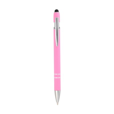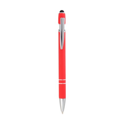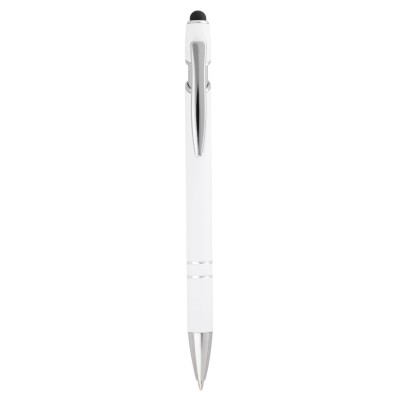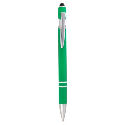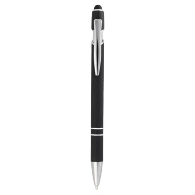 Bolígrafo metálico con acabado rubber, goma touch screen, clip y mecanismo de click. Medidas: 1 alto x 14.5 ancho