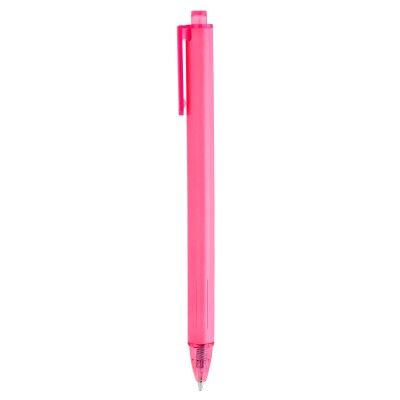 Plástico ABS. Bolígrafo retráctil. Cuerpo de diferentes colores acabado mate. Pulsador, clip y puntera translucidos del mismo color del cuerpo. Tinta negra.