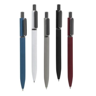 Bolígrafo con terminado rubber y clip metalizado. Mecanismo pulsador. Medidas: 1 x 13.9 cm