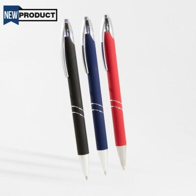 Bolígrafo de aluminio con recubrimiento rubber y mecanismo retráctil. Incluye funda de terciopelo.
