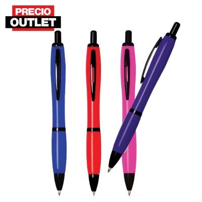 Bolígrafo plástico de colores sólidos con aplicaciones en negro.