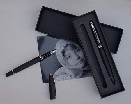 Medidas: Bolígrafos: 14 x 1.1 cm // Estuche: 17.5 x 5.5 x 2.5 cm