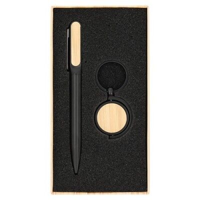 Set de oficina con bolígrafo, llavero y estuche. Bolígrafo con mecanismo twist. Medidas: 1 x 14 cm Bolígrafo / 3.5 x 7.5 cm Llavero