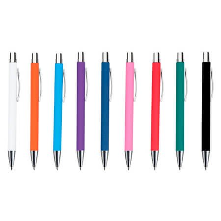 Bolígrafo metálico con acabado rubber, clip y mecanismo de click. Medidas: 14 alto x 1.2 ancho