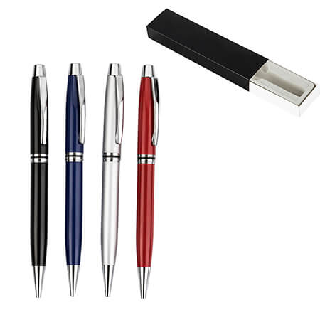 Bolígrafo metálico y mecanismo retráctil. Incluye estuche. Medidas: 14 alto x 1 ancho