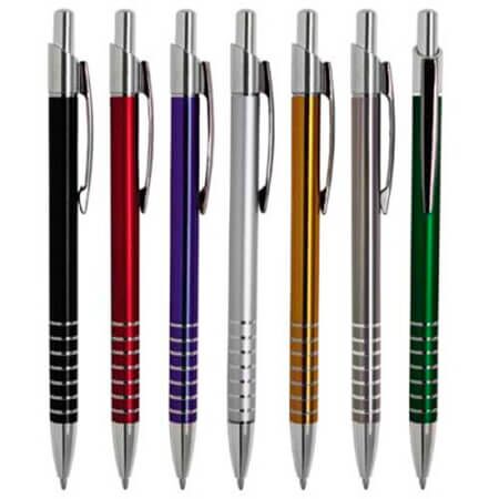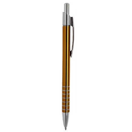 Bolígrafo de aluminio con clip metálico y mecanismo de click. Medidas: 13.8 alto x 0.8 ancho