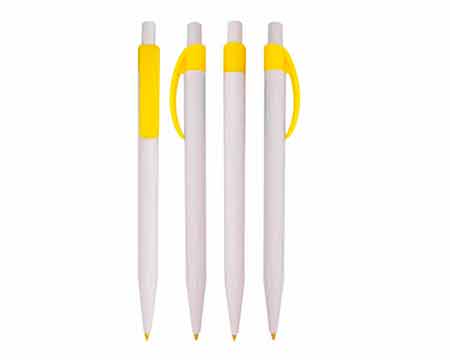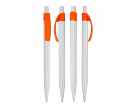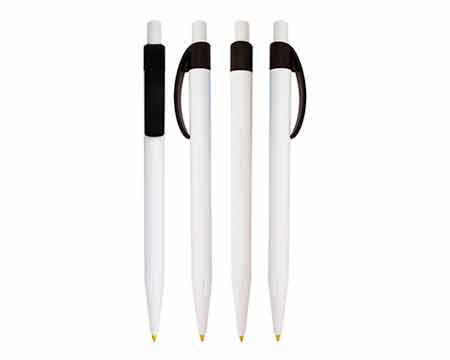 Bolígrafo Plástico con clip solido curvo, mecanismo retráctil y tinta negra en cajas de 100 piezas.