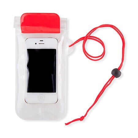 18,5 x 9 cm. Cuerda 45 cm. Plástico. Bolsa impermeable para celular, billeteras y cámaras de fotos. Cierre hermético con ziploc, dobladillo y cierre con velcro. Correa regulable para el cuello.