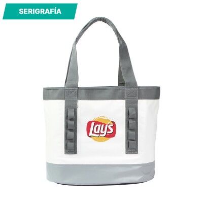 Bolsa impermeable con asas. Fabricada en PVC y poliéster.  Es ideal para playa, piscinas o salidas al aire libre, su forro resistente al agua y su amplio tamaño permite que se utilice como hielera y puedas llevar tus bebidas favoritas a cualquier lado. . Medidas: 46x25x38 cm.