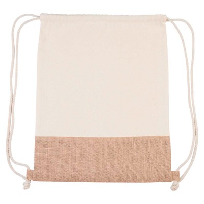 Bolsa-mochila con tirantes de cordón y cerrado de jareta. Medidas: 37 x 46 cm
