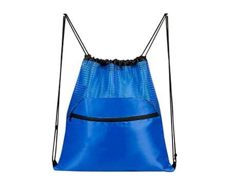 Bolsa-mochila con tirantes de cordón y cerrado de jareta. Bolsa frontal con cierre. Medidas: 36.5 x 44 cm