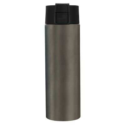 Ø 7 cm x 23 cm. Acero inoxidable. Capacidad 450 ml. Botella doble pared, sellada al vacío. Interior de acero 304 y exterior de acero 201. Pintura acabado mate. Tapa en PP con traba de seguridad y botón pulsador de apertura. Mantiene por más de 12 hs la temperatura de las bebidas calientes y 24 hs de las bebidas frías. Presentación en caja de regalo kraft.