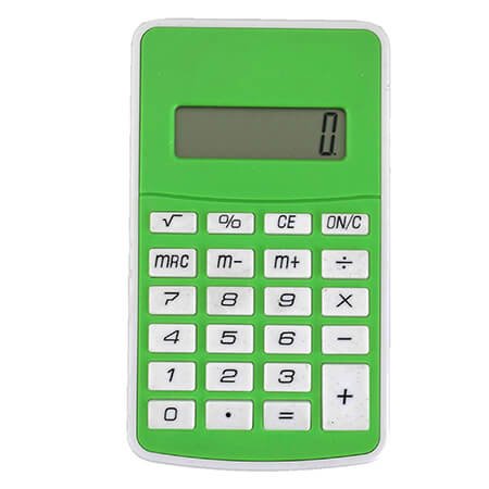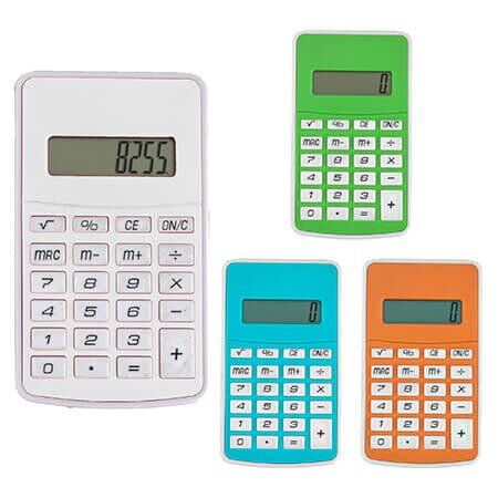 Calculadora de 8 dígitos con botones de cuadro. Incluye batería. Medidas: 11.5 alto x 6.8 ancho
