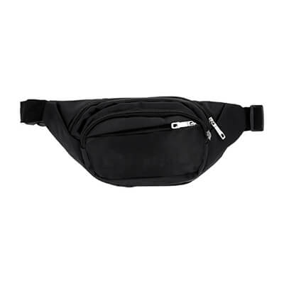 Cangurera deportiva con 3 compartimentos (2 delanteros y uno trasero) y cinturón ajustable. Medidas: 16 alto x 36 ancho