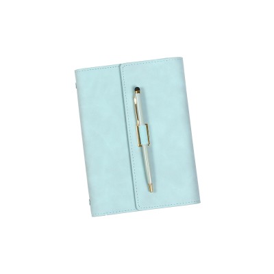 Carpeta con exteriores en curpiel de alta calidad, con un diseño elegante y duradero. En su interior cuenta con 100 hojas removibles, aros en color dorado, espacio para tarjetas, documentos, y bolígrafo metálico a juego que ayuda a cerrar la carpeta. Incluye caja de cartón individual. Con este set de carpeta de curpiel y bolígrafo metálico a juego, tendrás todo lo necesario para organizarte y escribir de manera elegante. Medidas: 19.2x14.5 cm.