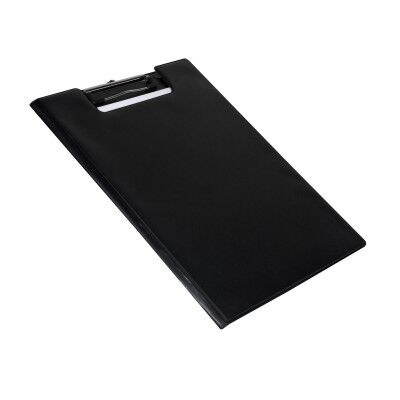 Carpeta de plástico con clip metálico. Incluye bloc de notas con 20 hojas. Cuenta con compartimento plegable para sostener un bolígrafo. Cuenta con una pequeña solapa interna para colocar hojas adicionales o tarjetas de manera ordenada y accesible. Medidas: 31 x 22 cm