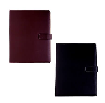 Carpeta de curpiel tamaño carta con block de rayas, compartimiento de tarjetas, porta bolígrafo y cierre magnético. Medidas: 32 alto x 25 ancho