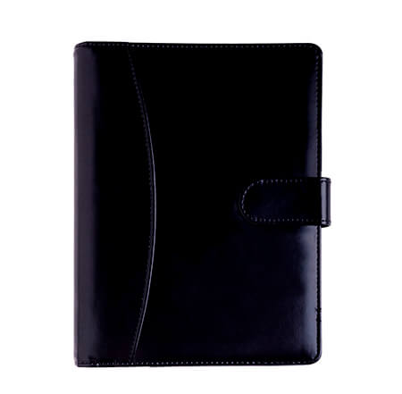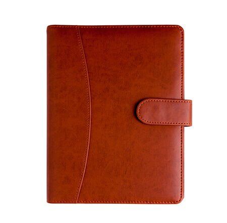 Carpeta de curpiel con block de 90 hojas de raya de 14.5 x 21 cm y arillo metálico. Medidas: 23.5 alto x 18 ancho