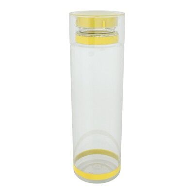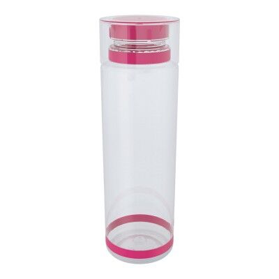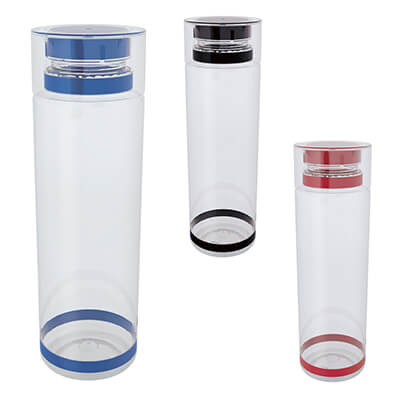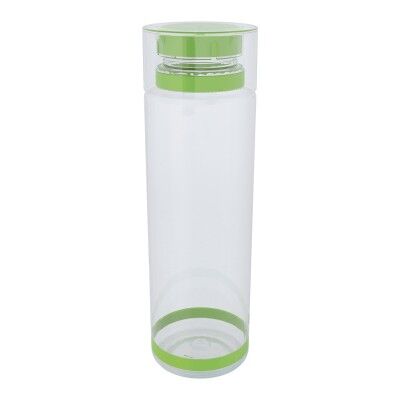 Sistema de rosca twist-off que permite abrir y cerrar la tapa en un giro. Cuenta con dos bandas elásticas de silicón, una en el cuello y otra en la base del cilindro. Mantener el linner en el interior de la tapa en todo momento, se debe retirar hasta su uso final. No exponer el cilindro a temperaturas mayores a 40 °C y revisar que la tapa no esté cerrada completamente para su almacenamiento y transportación. No apto para bebidas calientes. No introducir en microondas ni lavavajillas. Medidas: 7.4 x 24.5 cm