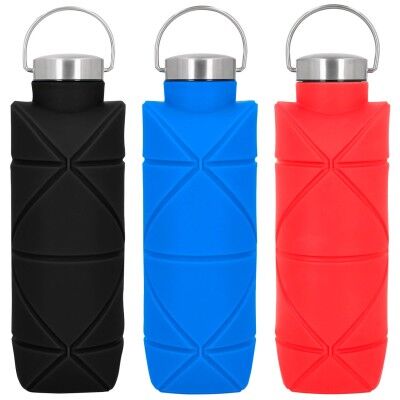 Cilindro de silicón que se extiende y contrae, con tapa metálica enroscable y asa. Medidas: 26 alto x 6.6 ancho