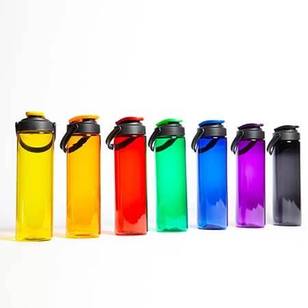 Cilindro de plástico PET con tapa colgante anti derrames, capacidad de 750 ml.