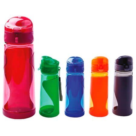Cilindro de plástico con tapa, manga y cordón. Medidas: 22.5 alto x 7.5 ancho