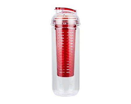 Cilindro con infusionador para frutas o bolsas de té. Tapa con sistema de rosca boquilla y sobre tapa que cierra a presión. Incluye caja individual. Medidas: 7 x 28 cm