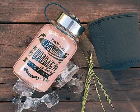 Cilindro de vidrio borosilicato de mayor resistencia ante el calor y los cambios de temperatura. Con tapa de rosca metálica, agarradera y funda protectora de neopreno. Para consumir bebidas de manera saludable, sin alterar el sabor o composición de los líquidos. CAP. 600 ml. Presentación: caja en color negro. Medidas: Ø 8.8 sin asa x 17 cm