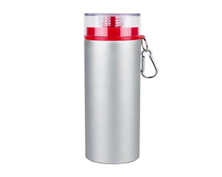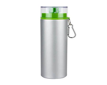 Cilindro de aluminio de una pared. Tapa con cierre de rosca y reductor con boquilla. Incluye carabina y caja individual. Medidas: 7.2 x 24 cm