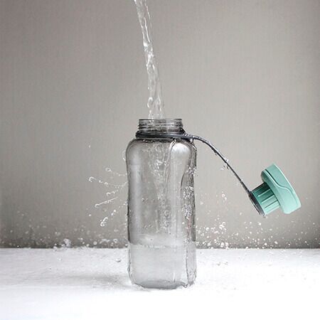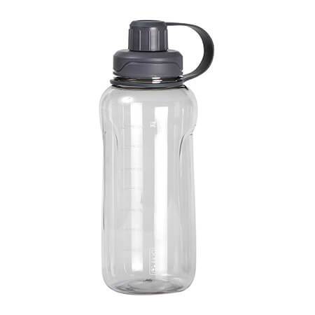 Botella deportiva fabricada en policarbonato con tapa de rosca fabricada en PP y asa de PE. Fabricada en materiales de grado alimenticio, ideal para bebidas frías o calientes; no usar en microondas. Capacidad de 1,500 ml (50.5 oz). Puede soportar temperaturas de -20°C a 99°C. Tapa a prueba de escurrimientos o fugas. . Medidas: 28.5x9 cm.