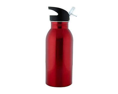 Cilindro metálico de una pared. Tapa de plástico con cierre de rosca, asa y popote. Incluye caja individual. Medidas: 6.9 x 24.2 cm